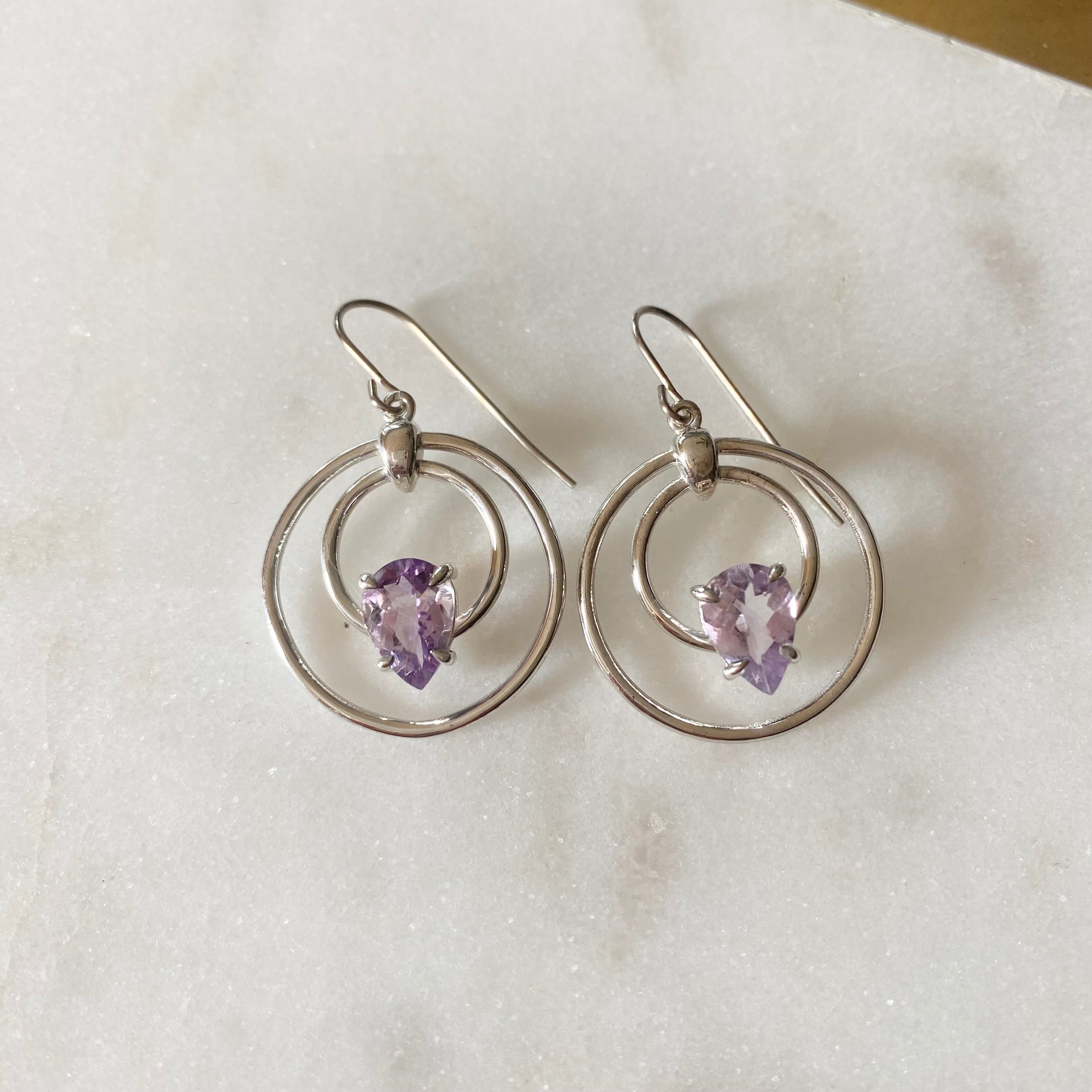 The Orbit Earrings feature a clean, balanced design of two interlocking circles, accented by a single gemstone. The design highlights clean lines and subtle geometry for a look that’s both timeless and contemporary. Crafted with intention, their minimalist form lends to quiet confidence and timeless style.